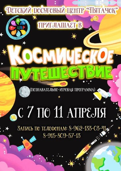 С 7 по 11 апреля ДДЦ "Пятачок" приглашает в Космическое путешествие ко Дню Космонавтики!